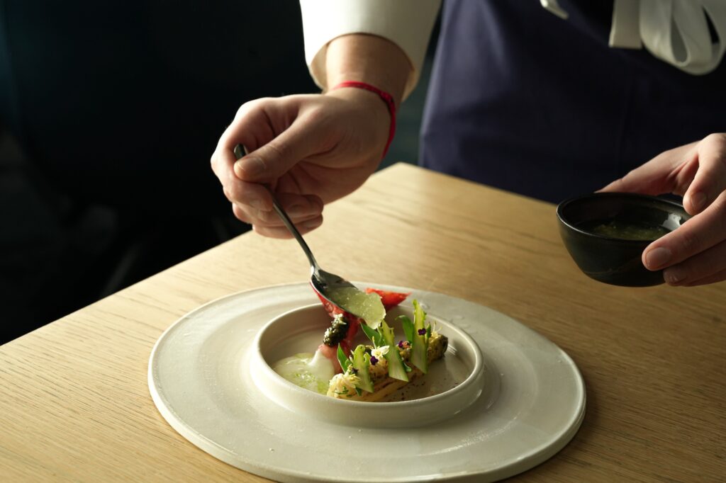 Passion, émotion, partage sont les principales valeurs du Chef. Il œuvre au quotidien afin de vous offrir une cuisine mettant en lumière les meilleurs produits des producteurs et domaines alentours favorisant ainsi le chemin le plus court entre terroir et cuisine dans le respect de leur engagement environnemental. Pour compléter cette expérience gastronomique exquise, la Cheffe Pâtissière, Fleur FERAGUS, propose ses créations sucrées pour un final élégant, gourmand et délicat.